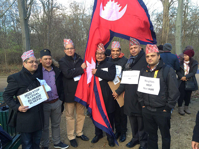 अघोषित नाकावन्दीको विरोधमा नेपालीहरूले बर्लिनस्थित भारतीय दूतावास अगाडि प्रर्दशन गरेका हुन । गैह्रआवासीय नेपाली संघ जर्मनीको संयोजकत्वमा भएको विरोध कार्यक्रममा जर्मनीका विभिन्न शहरबाट सय भन्दाबढी नेपालीहरुले र केही जर्मन नागरिकले पनि सहभागीता जनाएका थिए ।